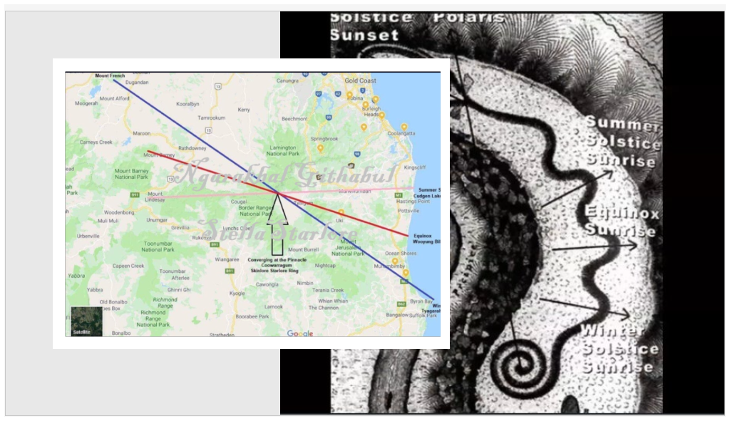 The Ancient peoples created Serpent mounds in North America, aligned with the Equinoxes and solstices, facing east. The Serpent mounds include the spiral or coil inducts of the terrestrial domain of the Rainbow Serpent in the Wollumbin Volcano Caldera in NSW, Australia.